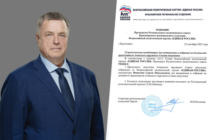 Новости Единороссы выдвинут на пост спикера Ачинского окружного Совета депутатов Сергея Никитина 26.09.2025 Город А