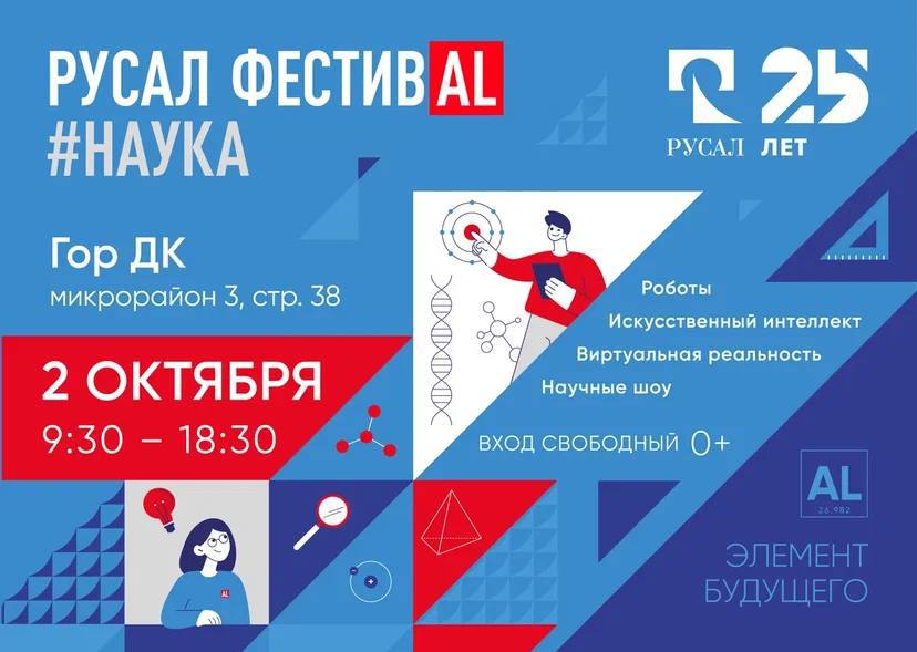РУСАЛ ФестивAL#НАУКА проводится с 2016 года в городах ответственности компании. В этом году проект охватит 17 городов России, открывая детям и взрослым мир современных технологий и научных открытий.
