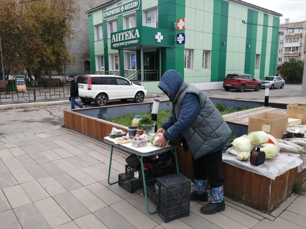 Популярный «зелёный рынок» в седьмом микрорайоне всегда гораздо многолюднее, и ассортимент там богаче, но и там из-за холода торговля пошла на спад. Сейчас там продают в основном тыкву, кабачки, соленья, таёжную ягоду и срезы последних осенних цветов.