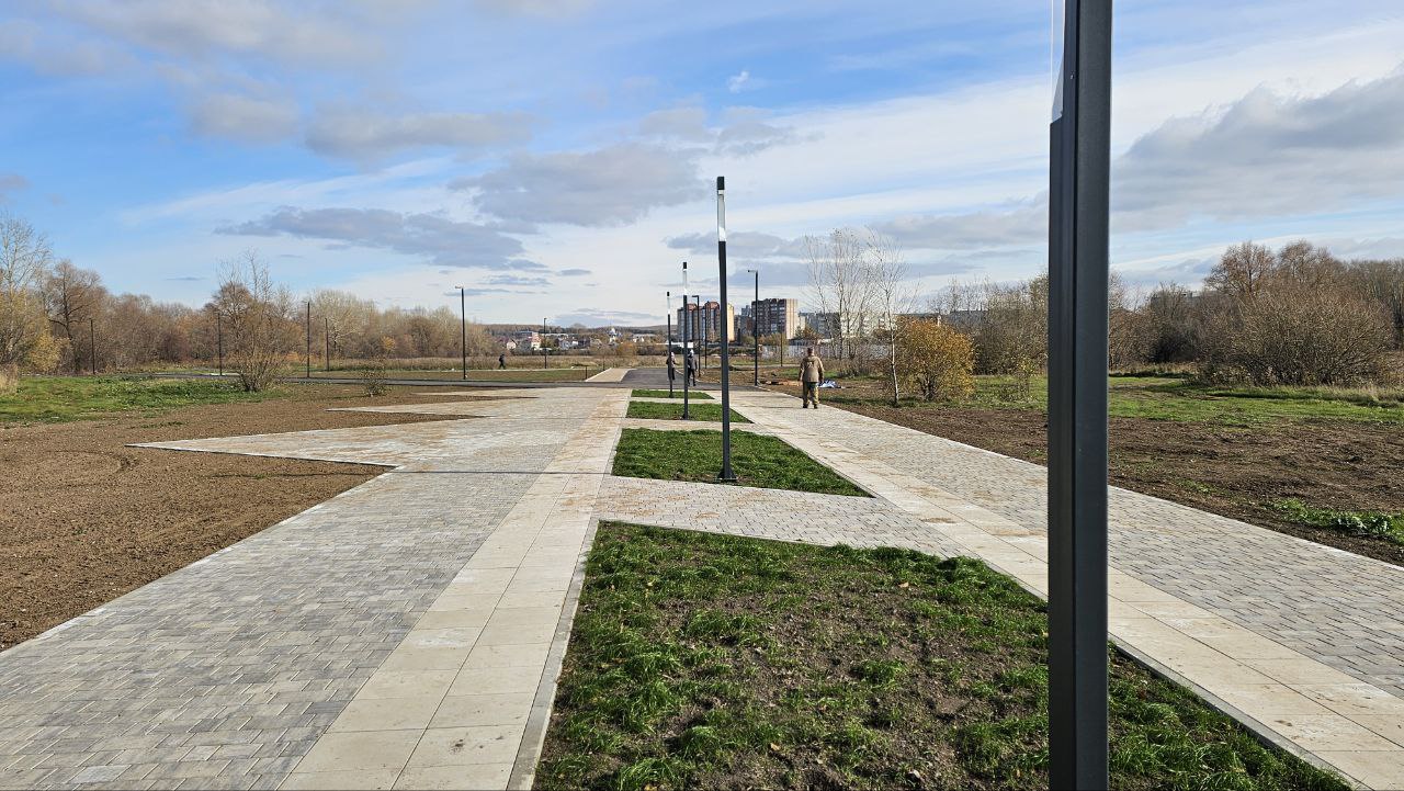 По сути, это широкая освещённая дорожка для пешеходов и велосипедистов – практически от спуска с улицы Зверева до самого Чулыма. По правой стороне – автопарковка, три спортивных площадки, тренажёры и МАФы. На берегу – терраса: там можно будет постоять и задумчиво посмотреть на реку. Или пофотографироваться – кому что больше нравится.