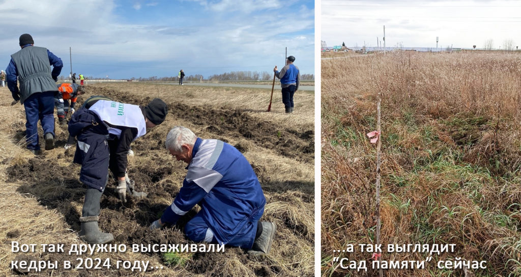 Но что можно наблюдать сейчас на месте высадки этих кедров в Белом Яре? Заросшее высокой травой поле, где кедров, что называется, днём с огнём не сыщешь. А ведь какое пафосное мероприятие было!