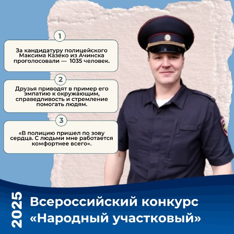 Стартовало новое голосование, и старшему участковому уполномоченному полиции ОУУПиПДН МО МВД России «Ачинский» вновь нужна поддержка земляков. По результатам второго тура будет объявлен главный победитель, а лучший народный полицейский представит Красноярский край на федеральном уровне.