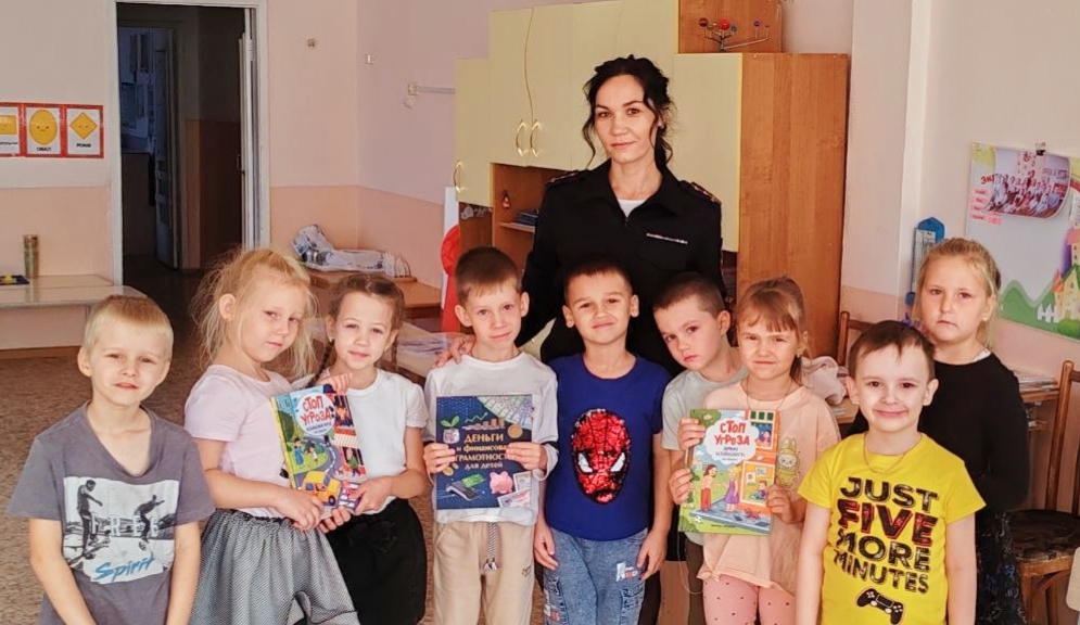 По окончании урока сотрудница полиции подарила подготовительной группе детского сада книги по финансовой грамотности, а также брошюры «Стоп угроза», в которых в доступной форме разъяснено, какие опасности подстерегают детей.