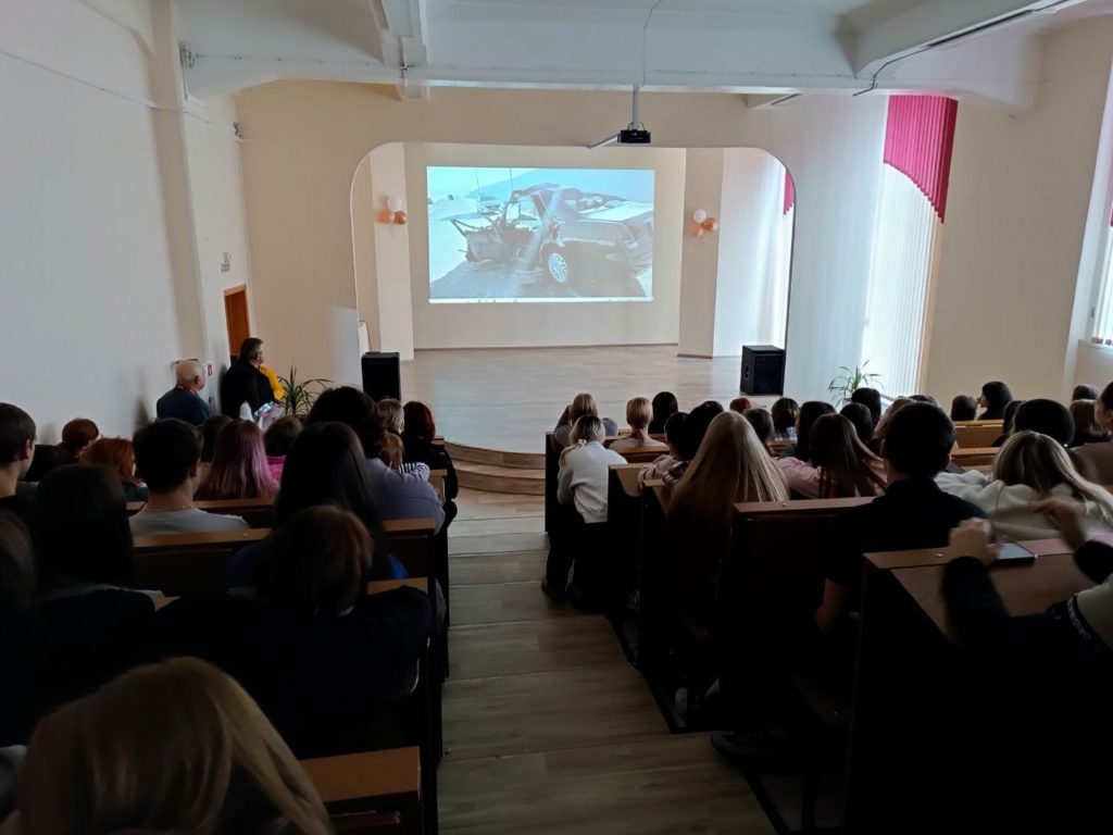 В ходе встречи студентам был продемонстрирован видеоролик с реальными ДТП, произошедшими на территории Красноярского края.
