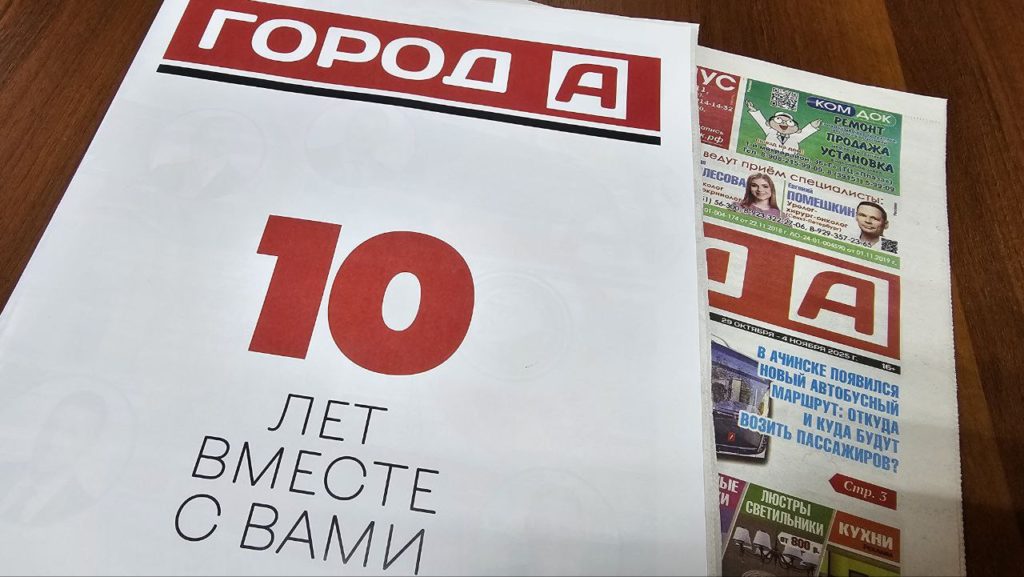 Вашему информационному периодическому изданию – газете «Город «А» – недавно исполнилось 10 лет. За этот отрезок времени еженедельник стал популярным в нашем Ачинске и районе. От всей души поздравляю Вас и весь ваш творческий коллектив с этой прекрасной датой!