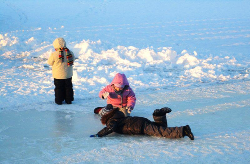 - Во всех случаях прежде, чем сойти с берега на лёд, необходимо внимательно осмотреться, наметить маршрут движения, выбирая безопасные места. Лучше всего идти по проложенной тропе. Опасно выходить на лёд при оттепели. Не следует спускаться на лёд в незнакомых местах, особенно с обрывов.