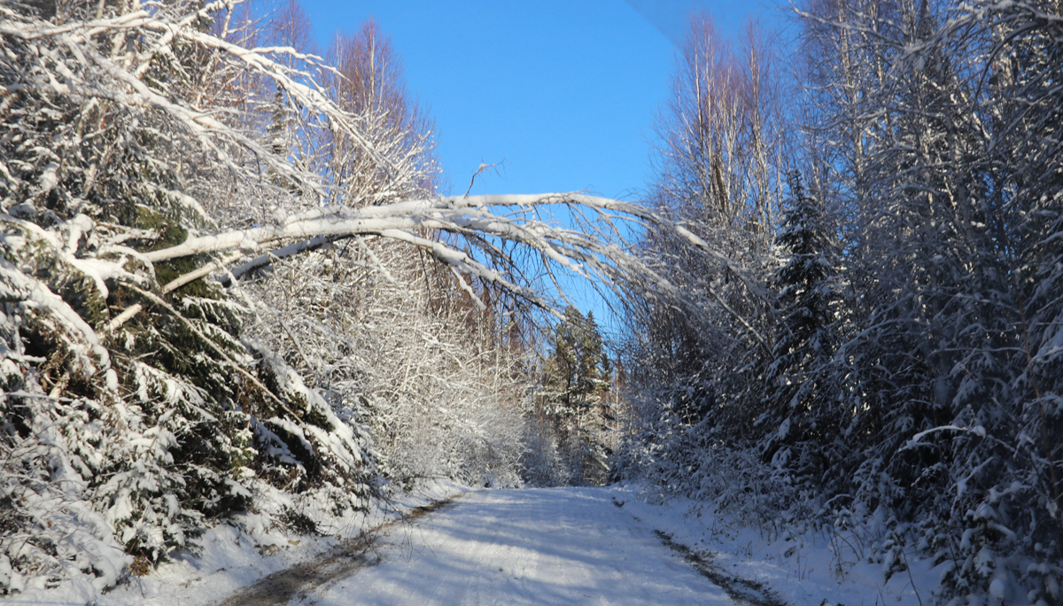 Путь оказался ещё более сложным: с одной стороны – сопка, с другой – обрыв. Деревья нависали над заснеженной дорогой, которую расчищают лишь местные жители.