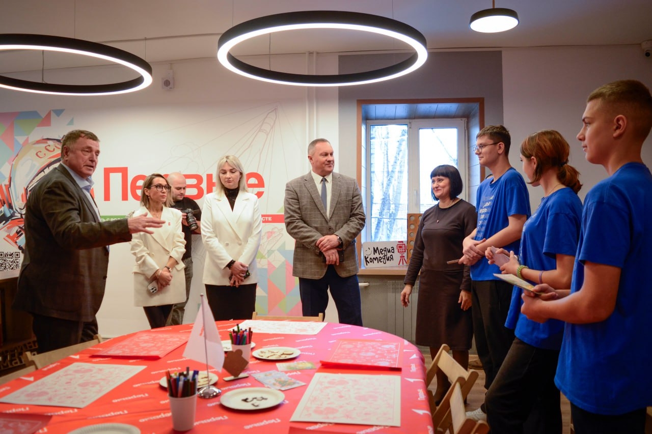 Позже Анастасия Евгеньевна рассказала нам, что планы на обновлённое пространство – грандиозные: это и кинопоказы, и организация самых разных активностей не только для школьников и студентов, но и для более взрослых категорий молодёжи. Места в современных просторных кабинетах хватит всем: здесь созданы пространства для дискуссий и переговоров, творчества и досуга. А ещё, чтобы сделать паузу, теперь есть зона фудкорта. Особая гордость центра – разместившаяся на втором этаже аудитория молодёжного «Движения Первых», где каждый сможет ощутить атмосферу лидерства, инициативы и больших возможностей.