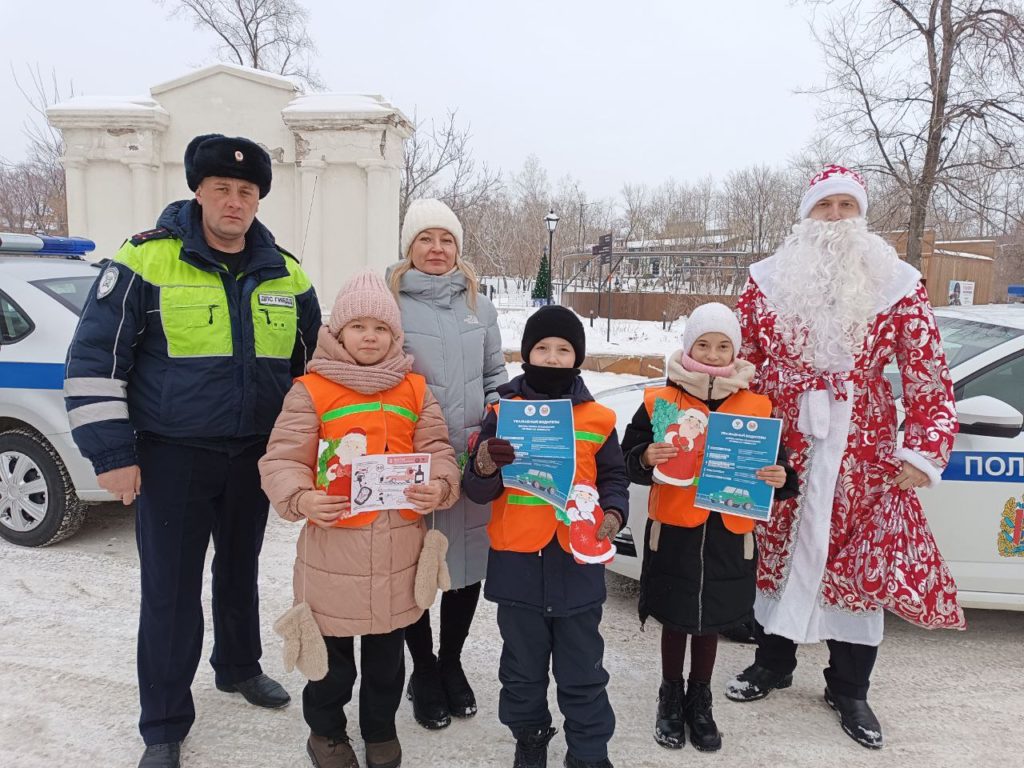 Командир ОВ ДПС ГИБДД Александр Гриценко, государственный инспектор БДД дорожного надзора в костюме Деда Мороза и ребята из отряда ЮИД школы № 4 вышли на одну из оживлённых улиц города Ачинска, чтобы поздравить водителей с наступающим Новым годом, а также напомнить им о важности соблюдения правил дорожного движения в зимний период.
