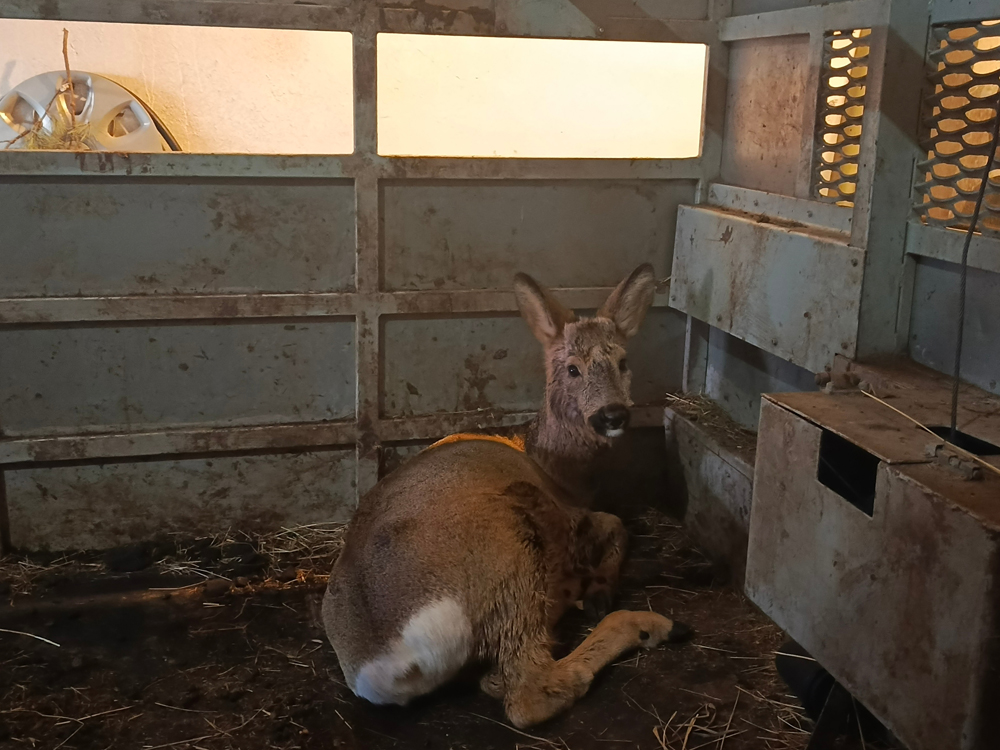 Там её поместили в тёплый вольер и осмотрели: животное хоть и выглядело крайне измученным, но никаких ран и травм у него не оказалось. Косулю откормили овсом, она набралась сил, и через несколько дней её выпустили на волю.