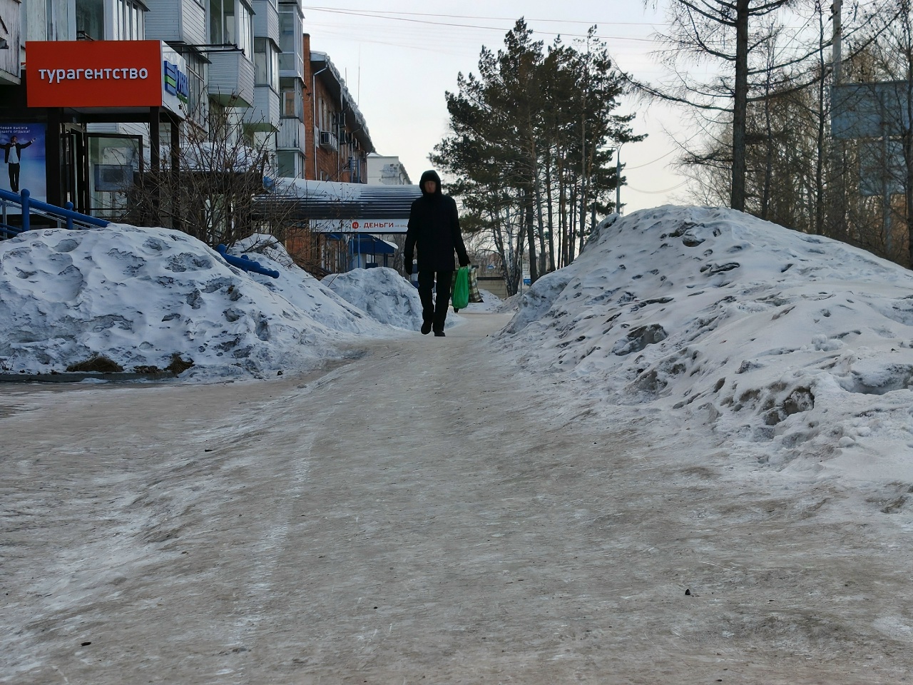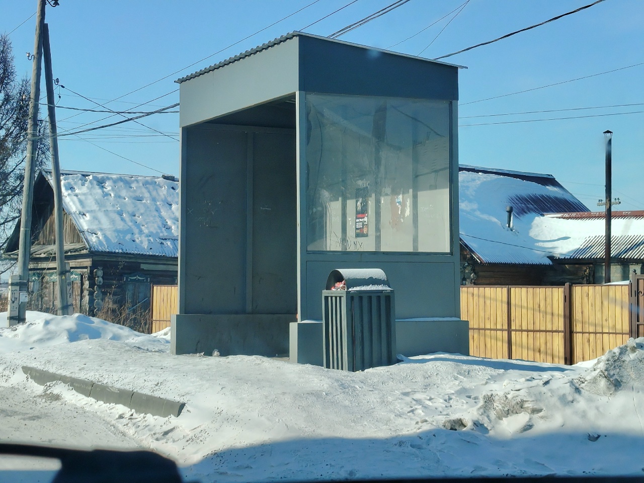 Другой участок улицы Омской – в качестве подтверждения жалоб ачинцев на отсутствие условий для ожидания автобусов. А что, такая горка вполне себе и от ветра защитит…