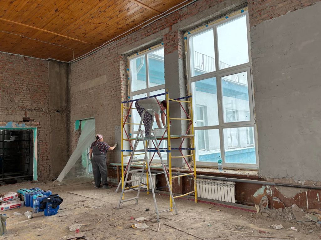 Как сообщил в своём телеграм-канале Игорь Титенков, сейчас активно ведётся ремонт в пищеблоке: укладывается керамогранит, выполняется штукатурка стен. Продолжаются работы на кровле, параллельно штукатурятся стены в спортивном и актовом залах. Планируется, что с середины марта специалисты возьмутся за внутренние коммуникации: системы горячего и холодного водоснабжения, а также канализацию.