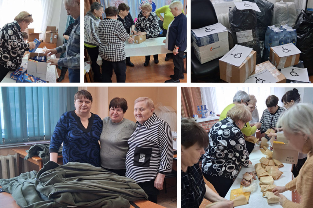 Люди с ограниченными возможностями здоровья скомплектовали несколько мешков-посылок. В них – шоколадные батончики, сало, суповые наборы, пауэрбанки, флисовые куртки, сети и накидки и т. д.