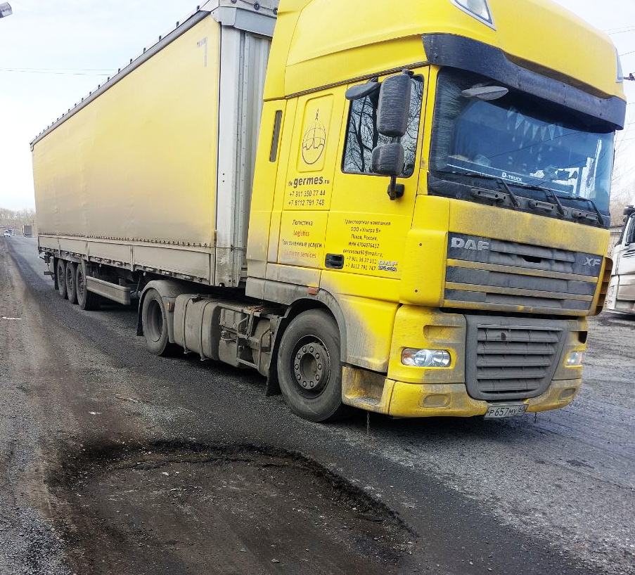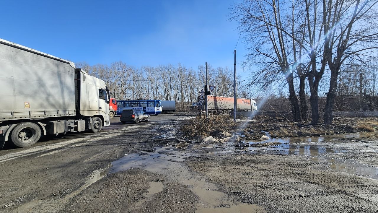 Правда, отключённый светофор влияет на график движения трамваев – не все фуры их пропускают. При этом дальнобойщиков тоже понять можно: они это делают не специально, а потому что долго переезжают трамвайные пути из-за огромных ям на перекрёстке.