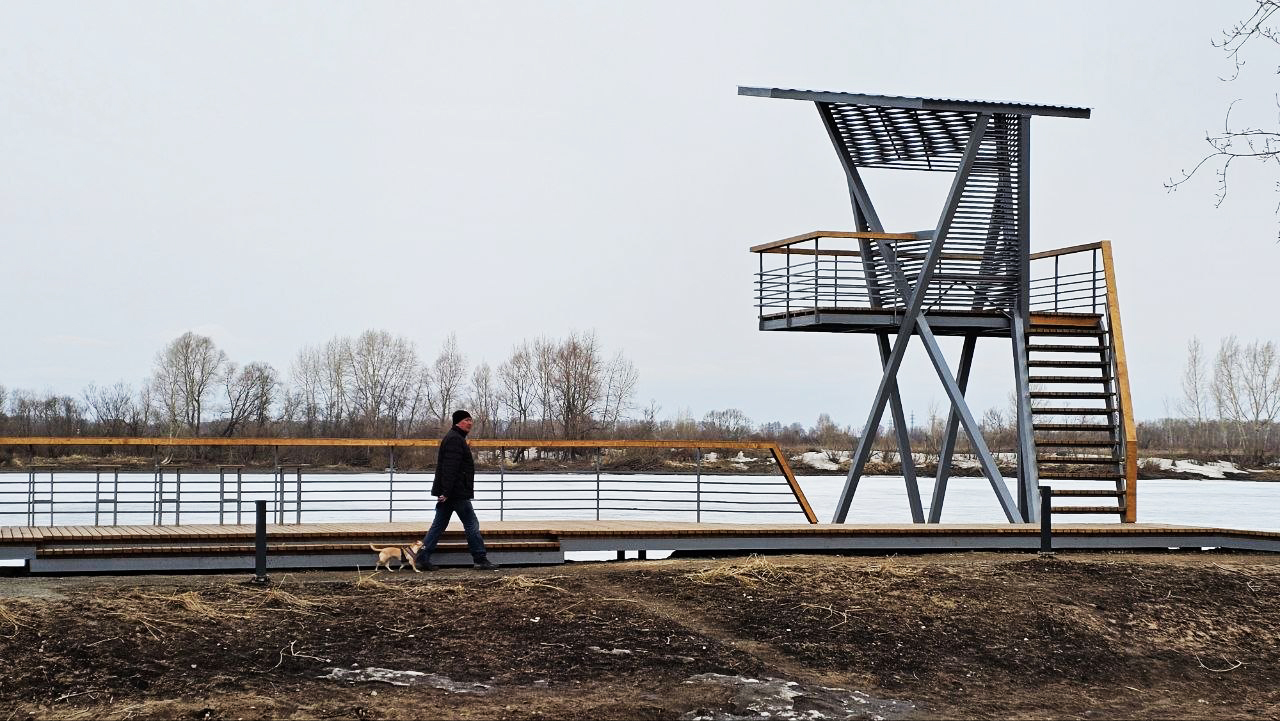 Деревянный «подиум», которым завершается дорога к берегу, в целости и сохранности. Лишь бы во время ледохода Чулым его не повредил…